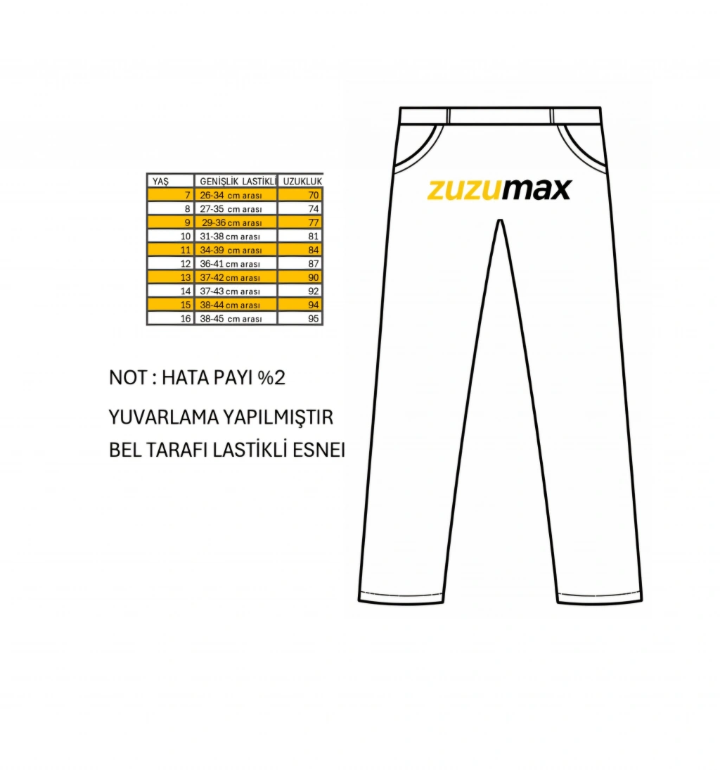 Beli lastikli ve ayarlanabilir ipli tasarımı sayesinde gün boyu konfor sunan likralı düz paça pantolon, hem okul hem de günlük kullanım için ideal bir seçenektir. Esnek likralı kumaşı hareket özgürlüğü sağlar, çocukların ve gençlerin rahat etmesine yardımcı olur.