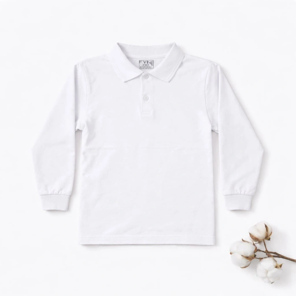 okul beyaz Polo Yaka uzunkol tişört kıyafetleri üniforması çocuk genç