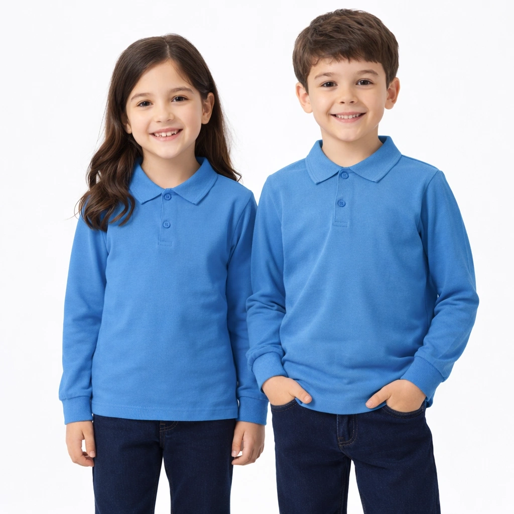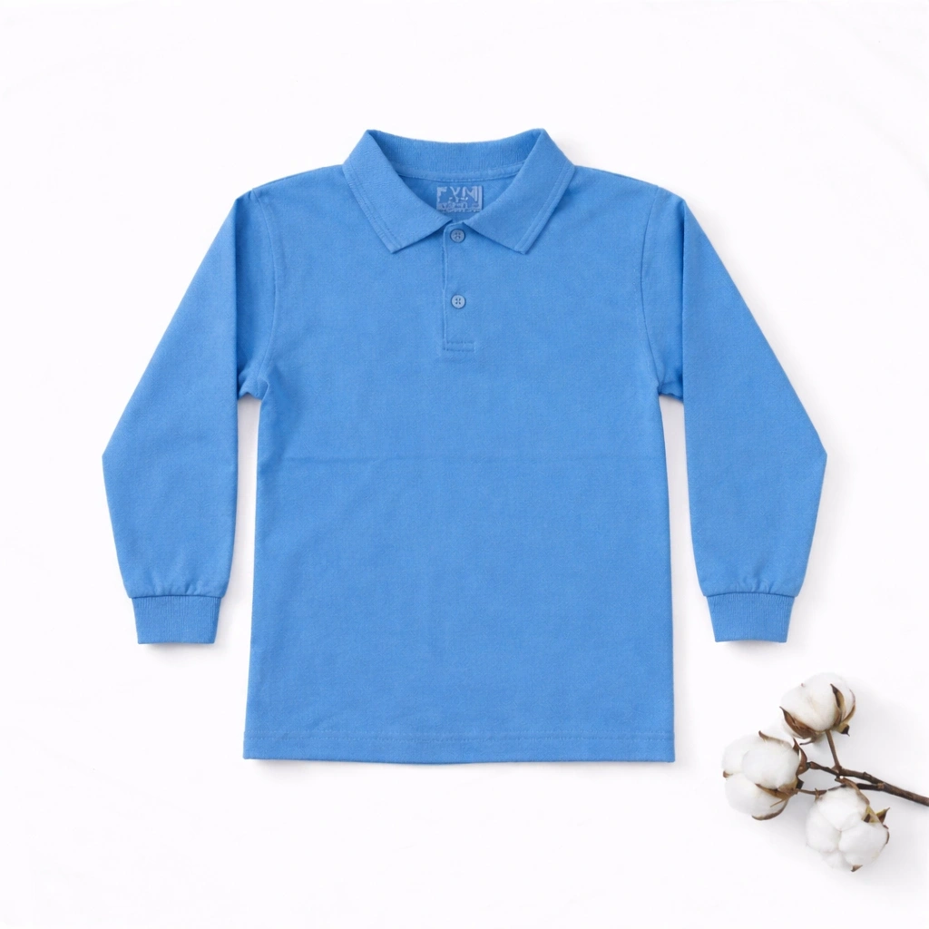 okul mavi ( gök mavisi ) Polo Yaka uzunkol tişört kıyafetleri üniforması çocuk genç
