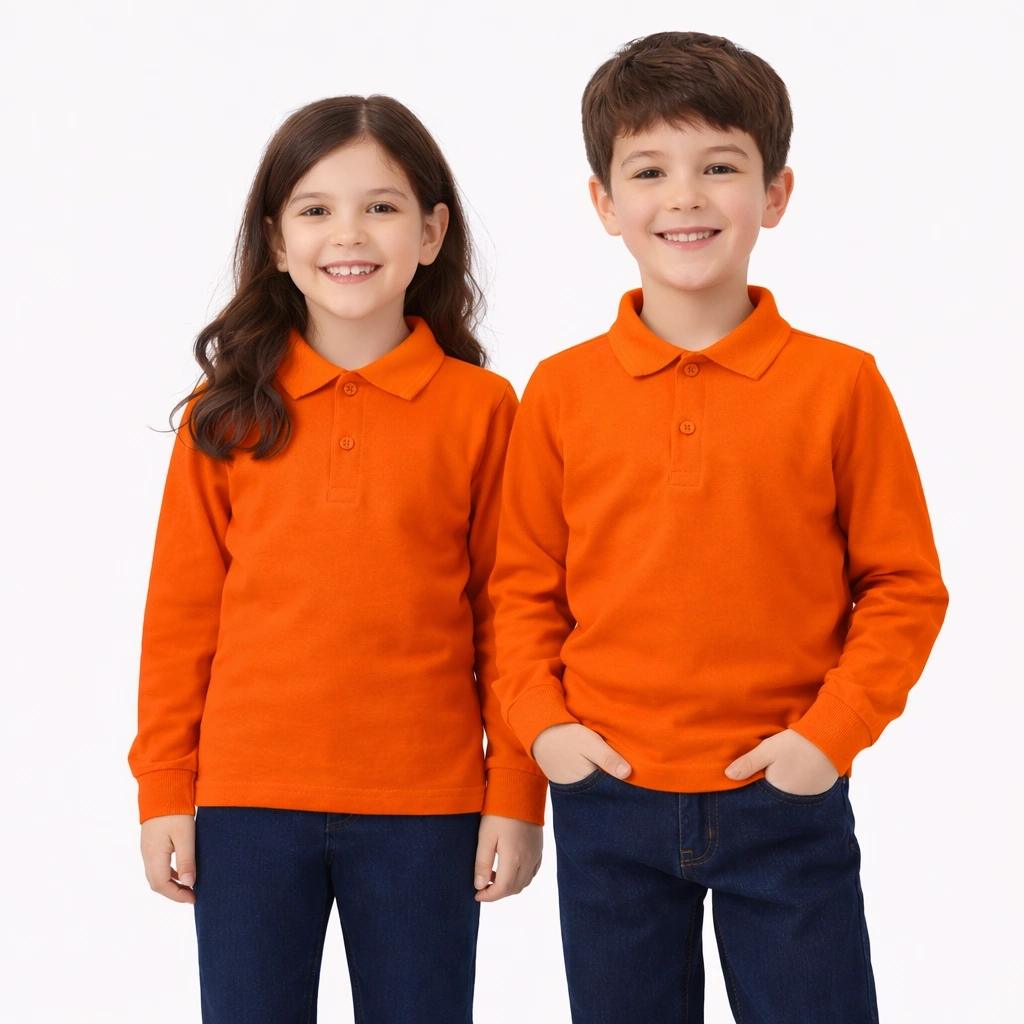 okul turuncu Polo Yaka uzunkol tişört kıyafetleri üniforması çocuk genç